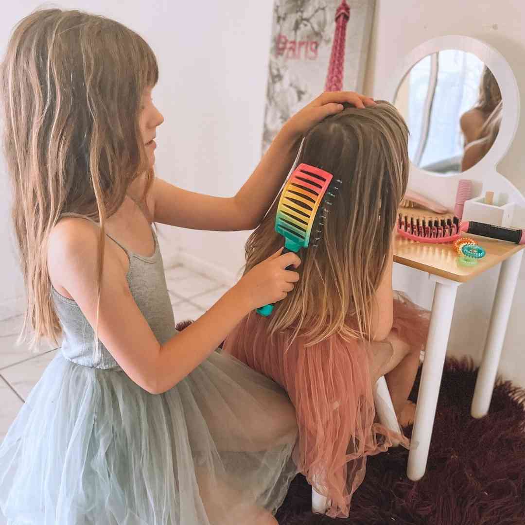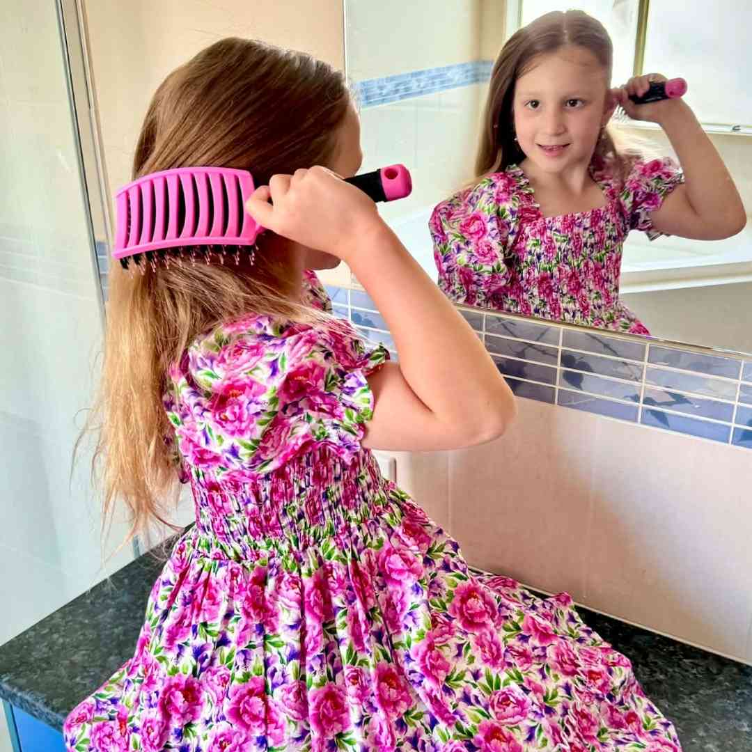 I created our Sensory Hairbrush after struggling with my own hair snapping, breaking, thinning and hurting every time I brushed. Nothing felt gentle enough that still actually detangled, so I started designing one myself. Around the same time, my best friend’s daughter, who’s on the spectrum wouldn’t let anyone brush her hair without tears or meltdowns.